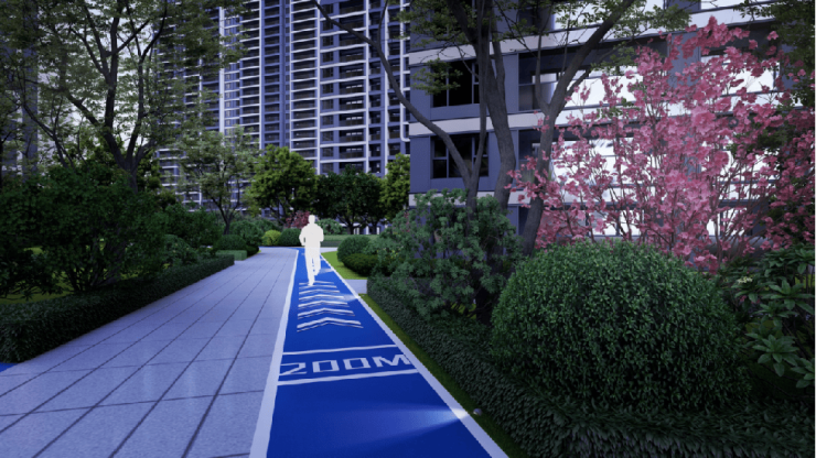 打制“一环两轴八境”臻美园林,约800米健身漫道串联全区,全龄皆享的存在场域,涵盖“童梦星河”“共享书吧”“父老空间”等。